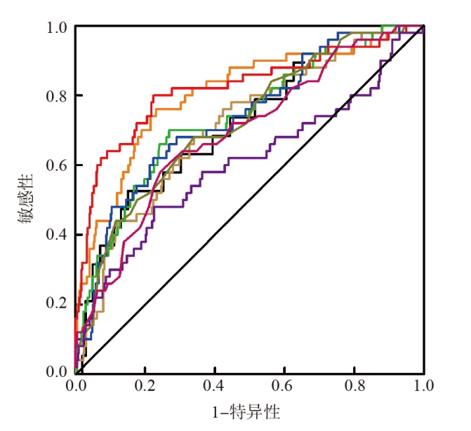 | 项目 | AUC(95%CI) | 最佳临界值 | 敏感性/% | 特异性/% | 约登指数 |