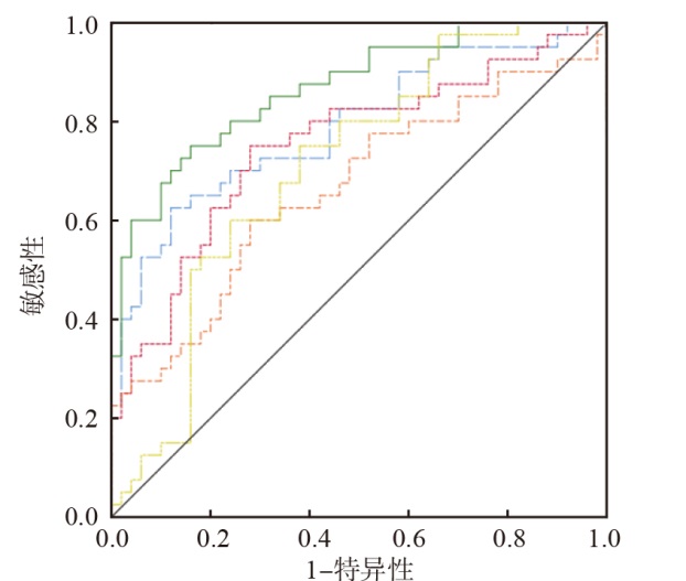 | 项目 | AUC(95%CI①) | 最佳临界值 | 敏感性/% | 特异性/% | Youden指数 |